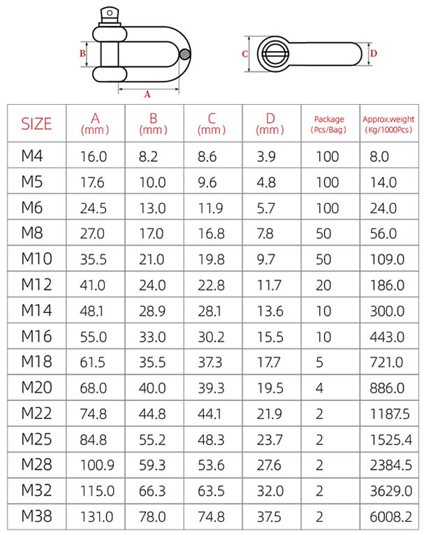 成华不锈钢D型卸扣:外形美观平滑,安全负荷大,使用寿命长,采用不锈钢材质浇筑而成,实心结构结实牢靠,更具有耐磨与抗腐蚀性能。